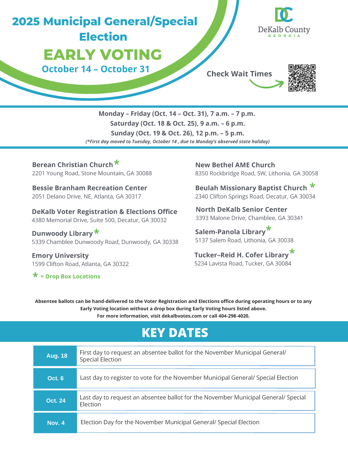 Early voting is approaching and is an easy and convenient way to cast your ballot. During Early Voting, registered voters can vote at any DeKalb County Early Voting site.